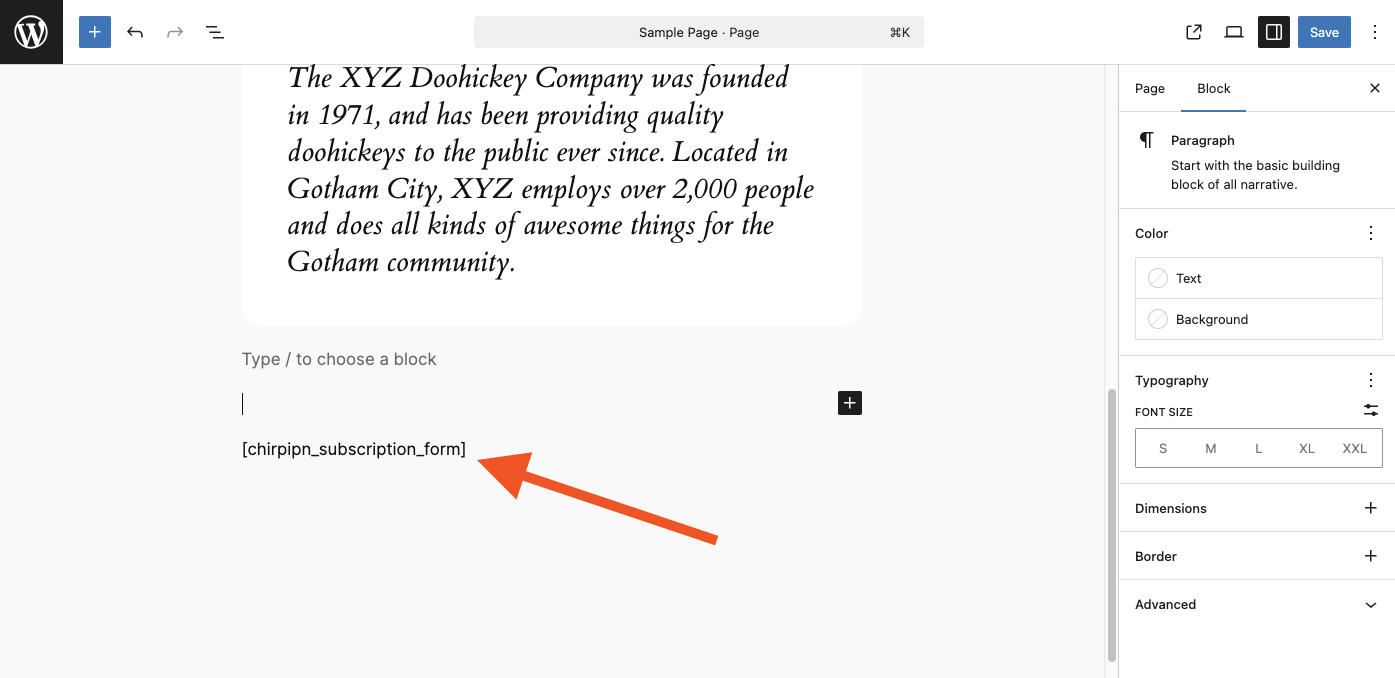 2. Copy the shortcode [chirpipn_subscription_form] and add it to any post, page, or template