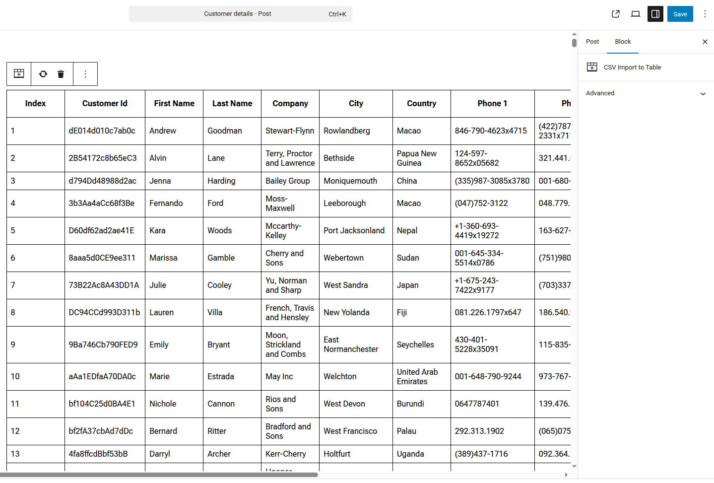 CSV Import to Table is a powerful Gutenberg block that allows you to easily import CSV files and display them as fully editable tables in your WordPress posts and pages.