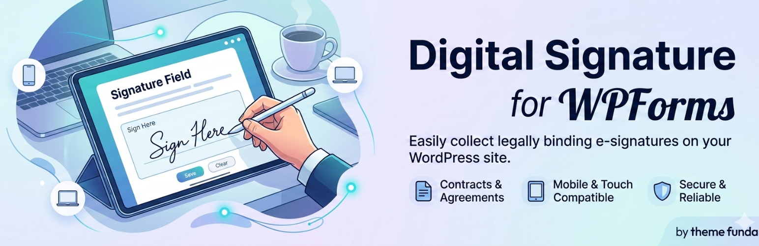 This plugin adds a drag-and-drop digital signature field to the WPForms form builder. Once placed on your form, visitors can draw their signature using a mouse, stylus, or finger — and the signature is saved automatically with the form entry.