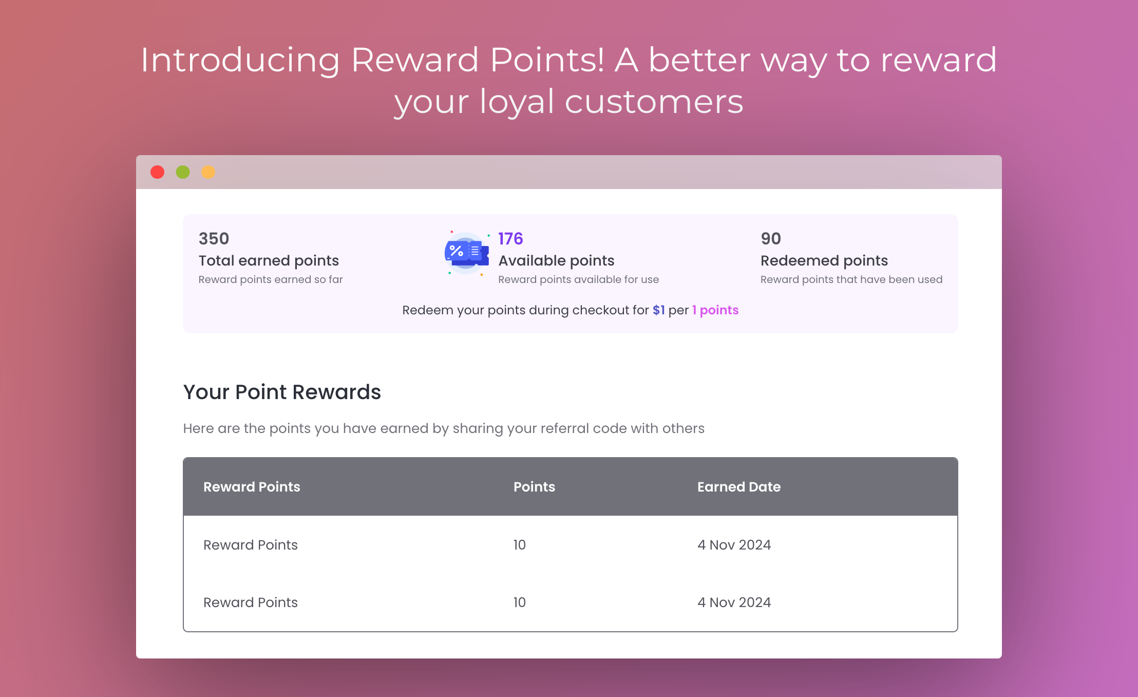 🧑💻 Shortcode Support: Place the Rewards Points table on your site with a shortcode.