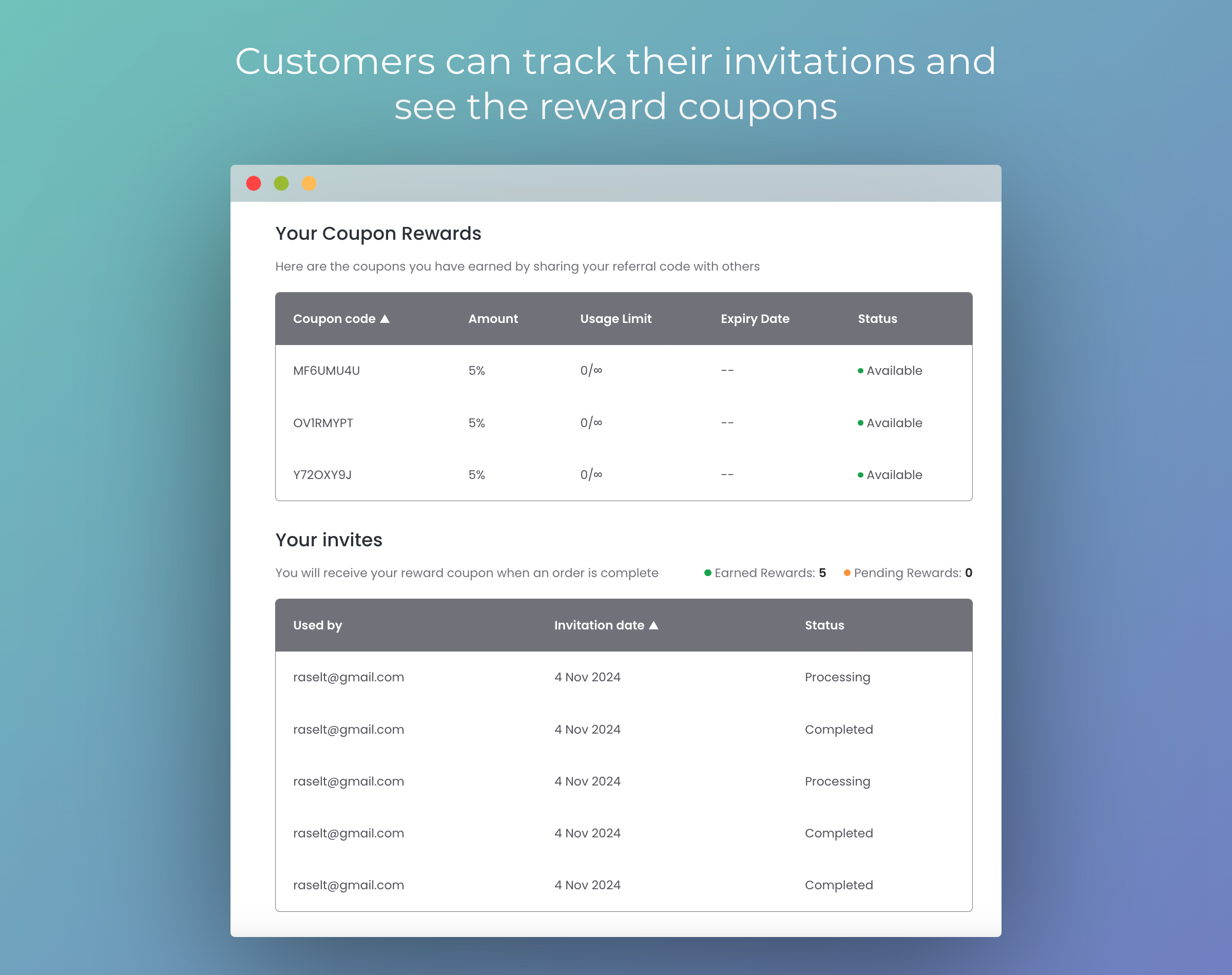 🔍 Invitation Tracking: Referrers can track the progress of their shared coupon from the “My Account” page.