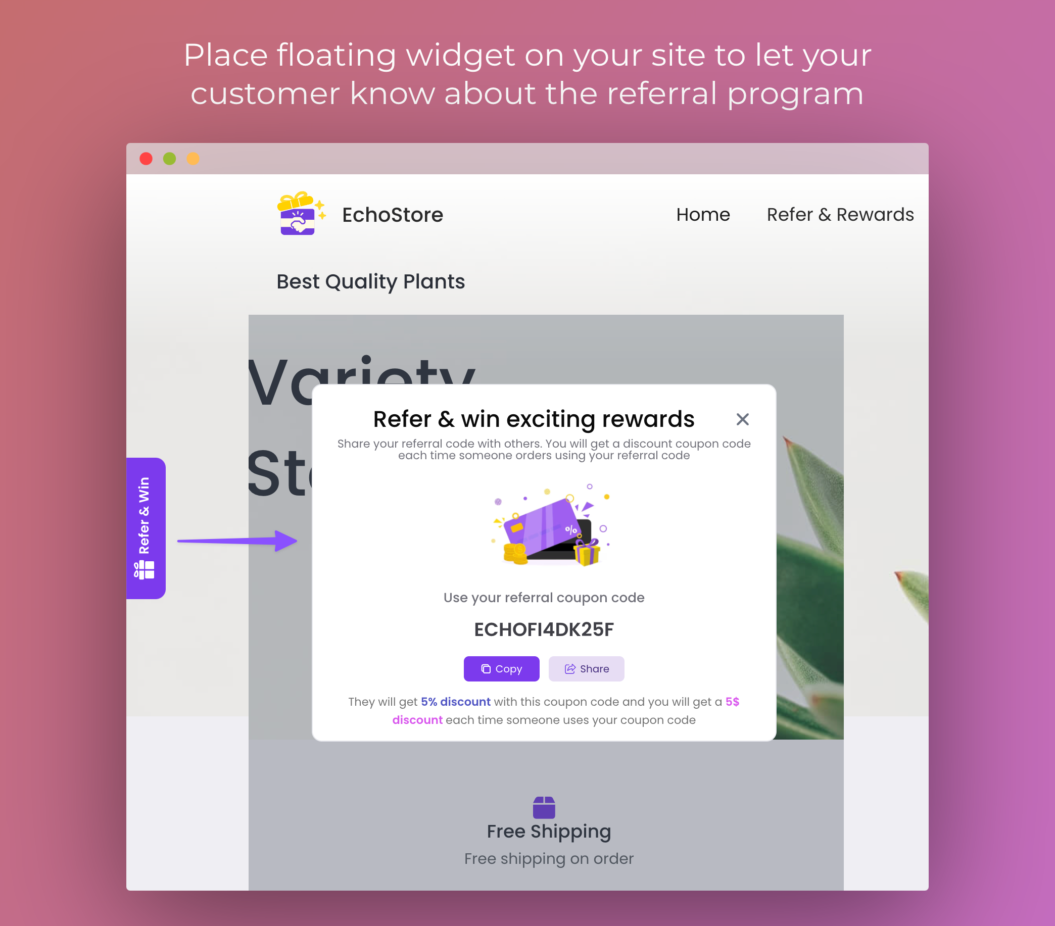 🎈 Floating Referral Widget: Notify site visitors about your referral program with a floating widget that can help increase participation.