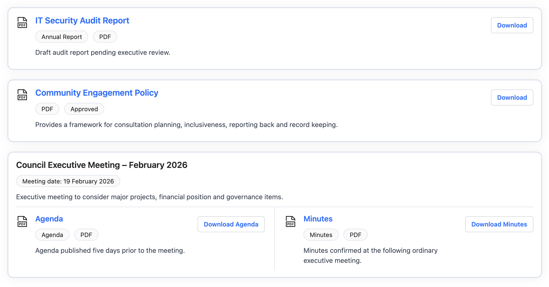 GovernDocs helps separate governance content from normal website content so your official records are easier to manage and easier for visitors to find.