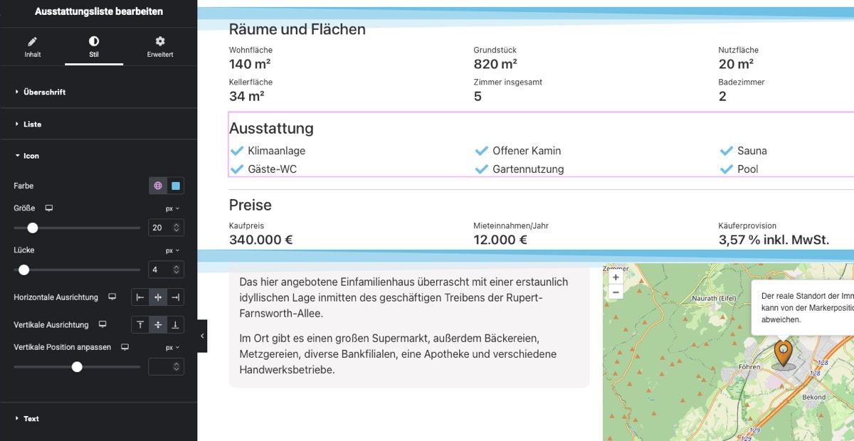 With the widgets and dynamic tags provided by this add-on, template pages (e.g., for real estate archives and individual pages) can be implemented both as Elementor Pro templates and as regular pages that can be used in combination with the free version of Elementor.