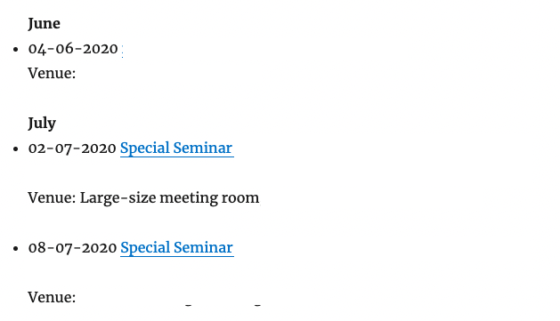 - Fixed an issue where the end date of the same day was displayed depending on the date_format option when specifying the view_end_date shortcode option to display the end time. However, the format of the end time depends on the time_format option. The default is H:i.