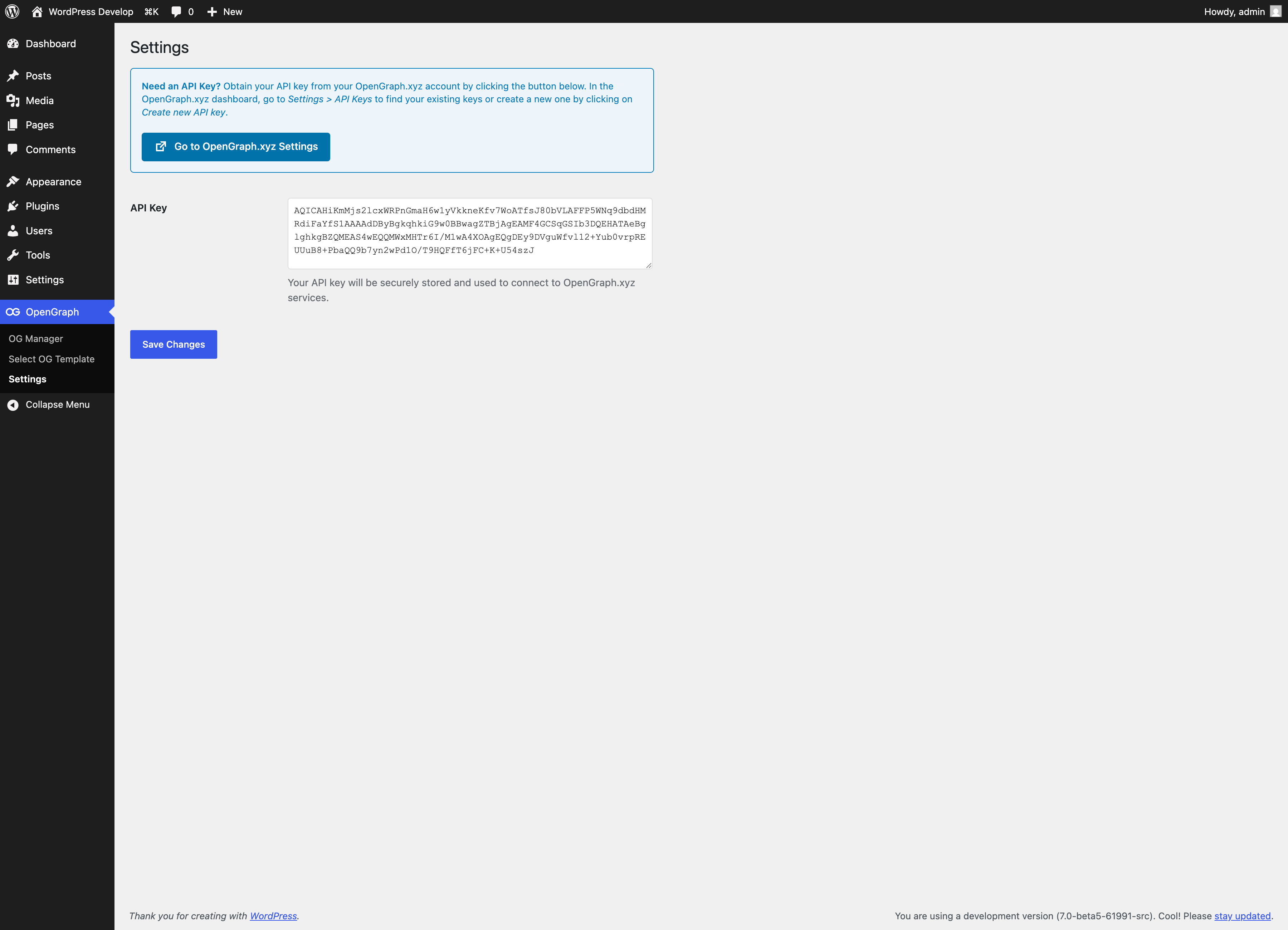 opengraph-xyz.zipto the/wp-content/plugins/directory. - Activate the plugin through the ‘Plugins’ menu in WordPress.