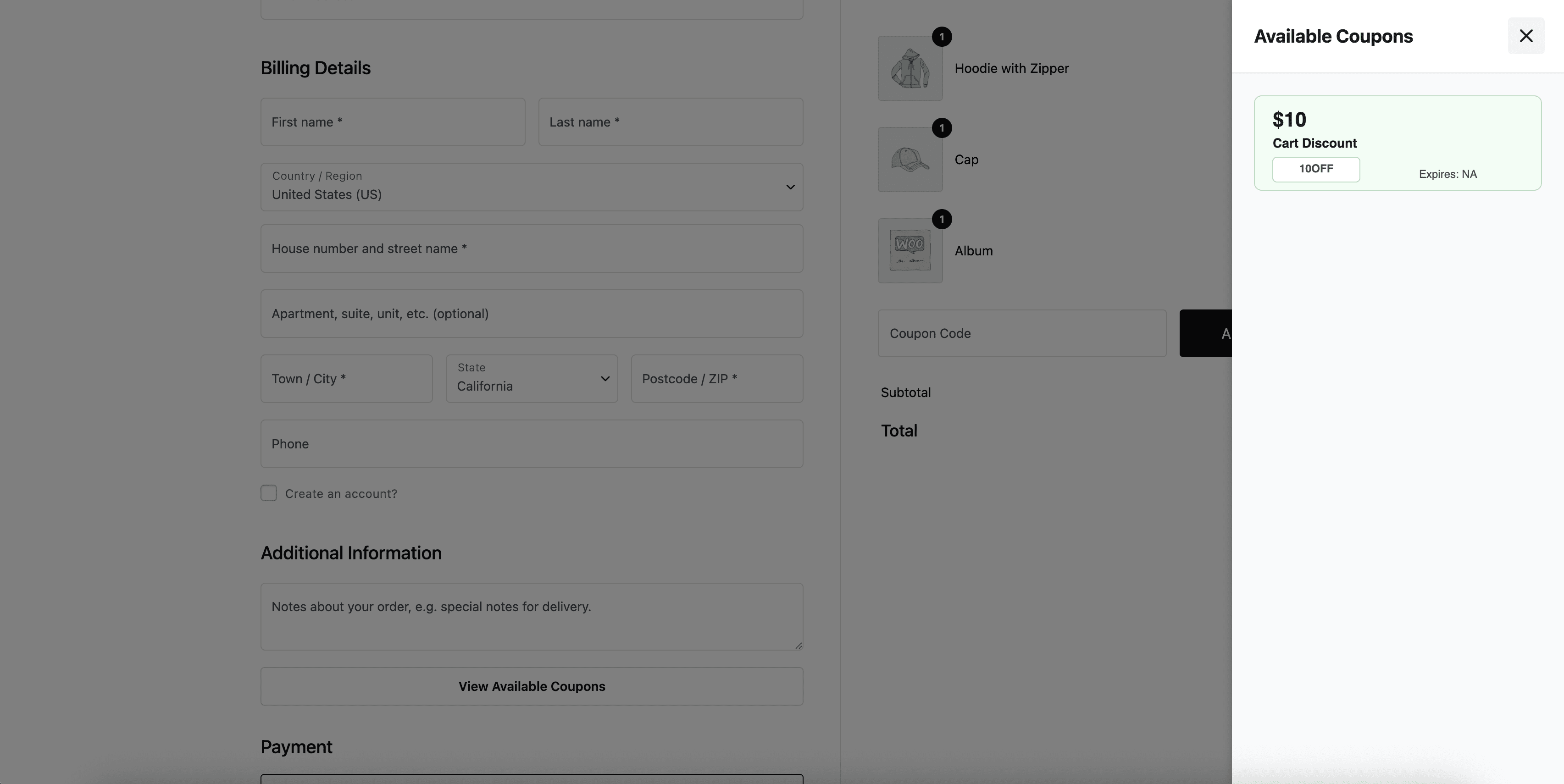 • Cart and Checkout Blocks view (modern WooCommerce checkout flow).