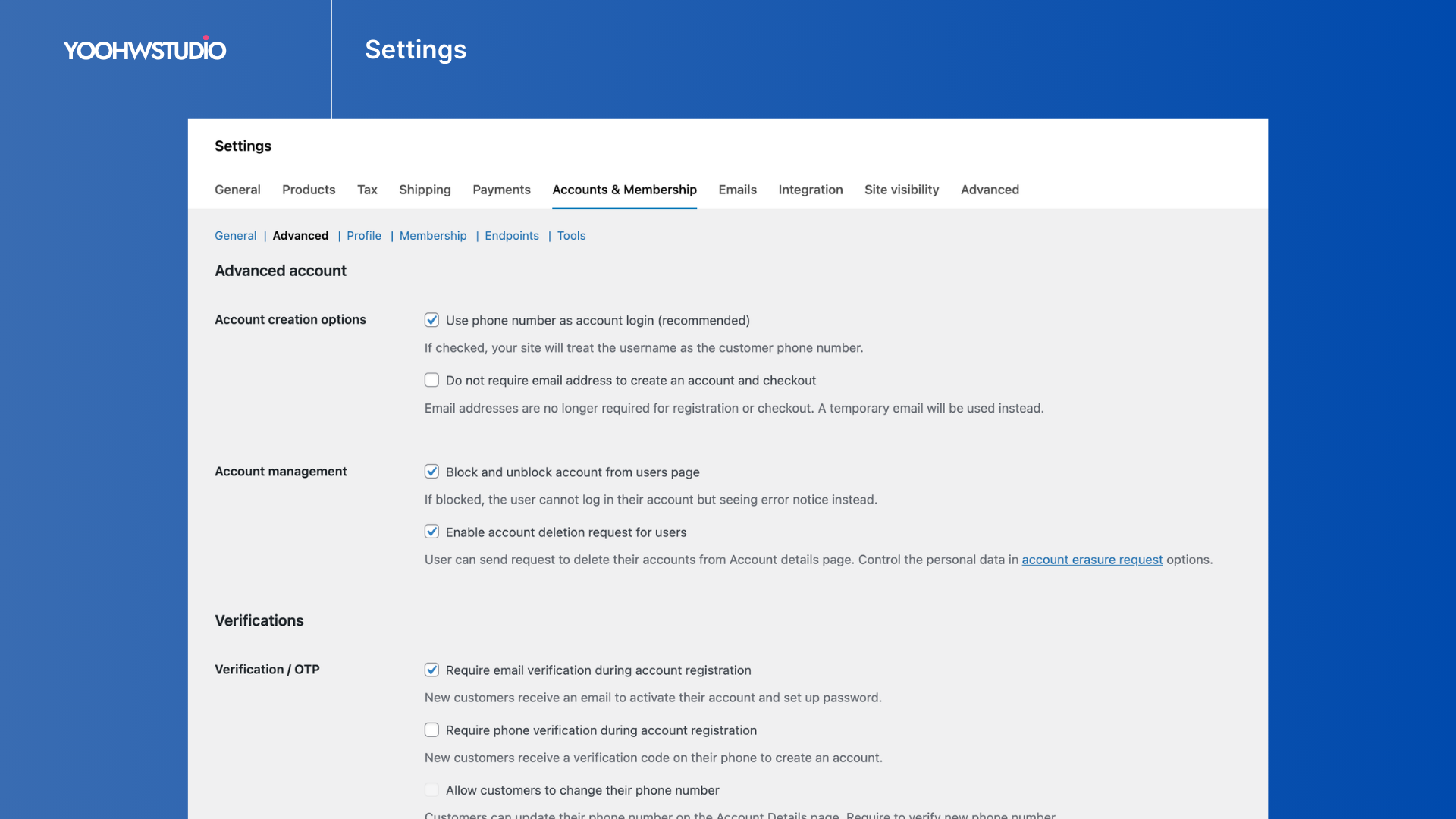 Advanced Accounts for WooCommerce – Membership / Customize My Account Page / OTP
